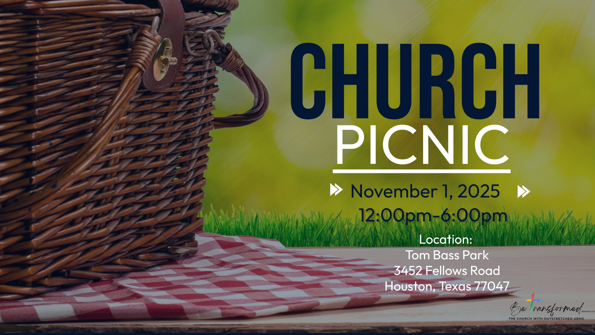 Join us on November 1, 2025, from 12:00 p.m. to 6:00 p.m. for our Church Picnic! Come out and enjoy a day filled with food, fun, and fellowship. If you’d like to help, please sign up using the tab below.