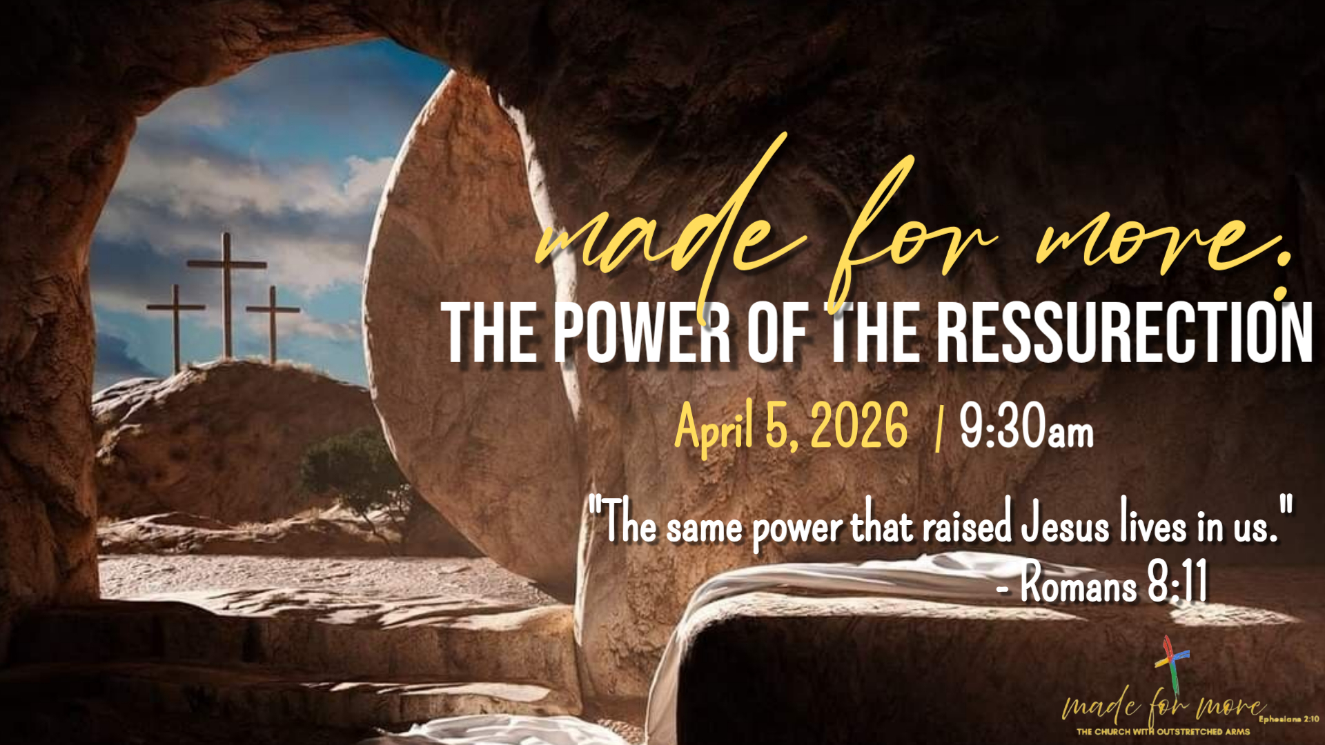Join us for Resurrection Service on April 5, 2026, at 9:30am as we celebrate the victory of Christ over the grave! đ Experience powerful worship, inspiring messages, and a spirit-filled morning you wonât forget. Bring your family and friendsâletâs rejoice together!